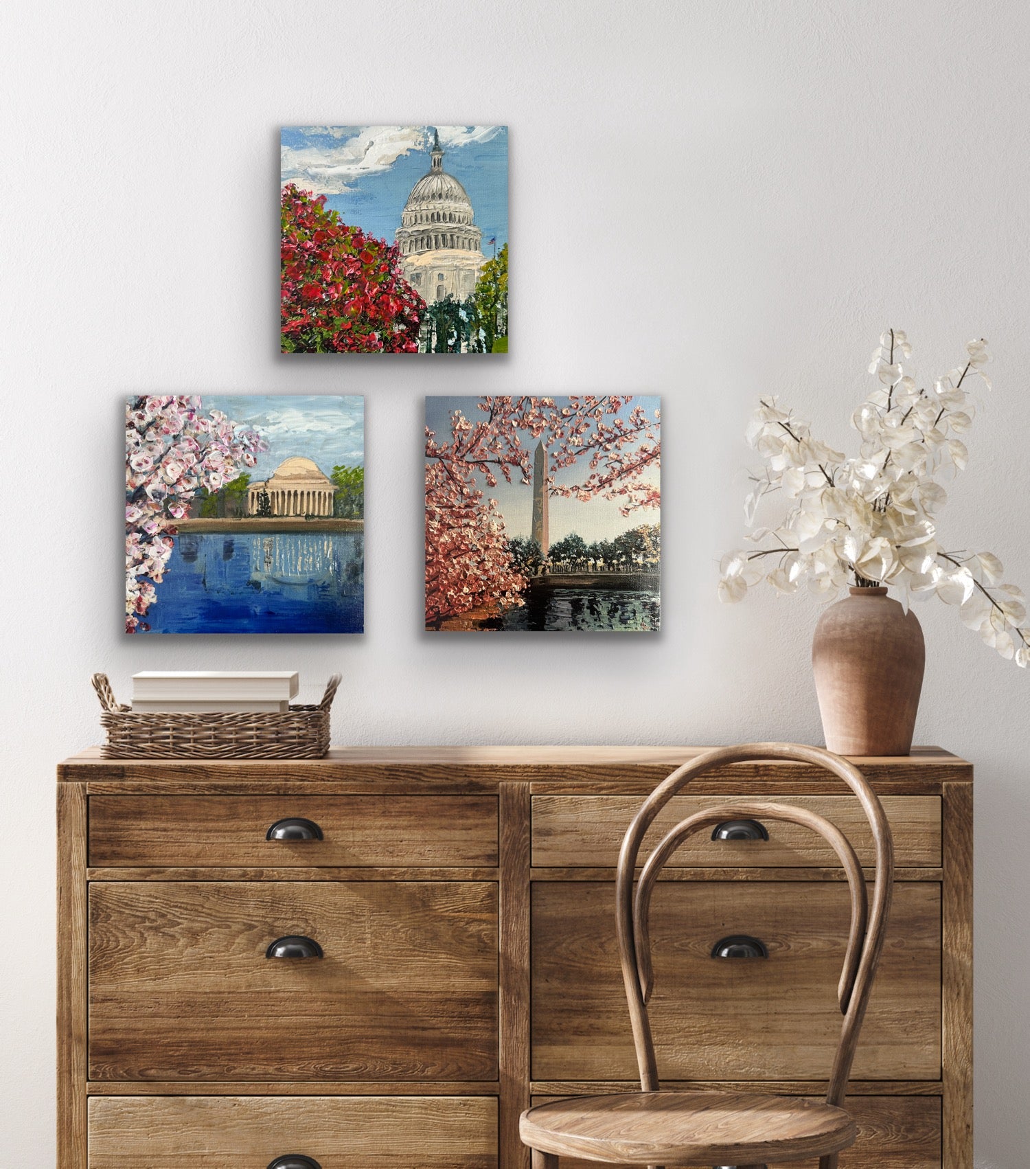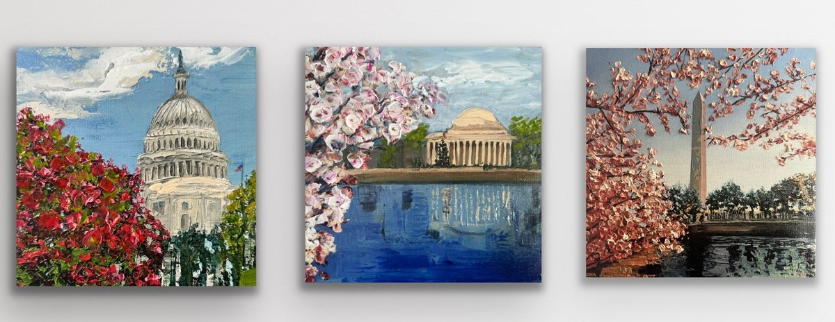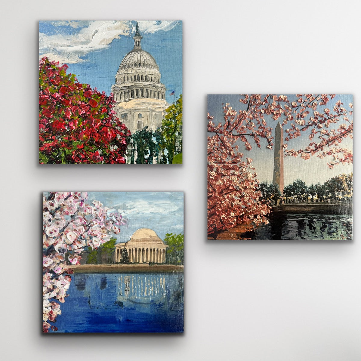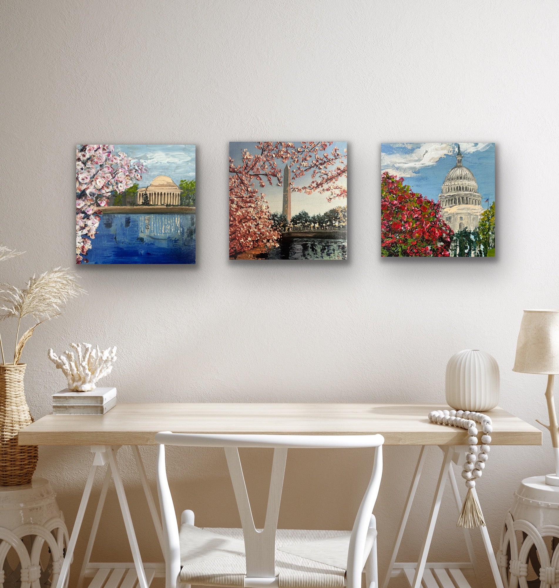 Together, these three pieces create a harmonious tribute to history, nature, and the fleeting magic of springtime in Washington DC.