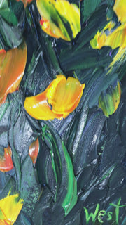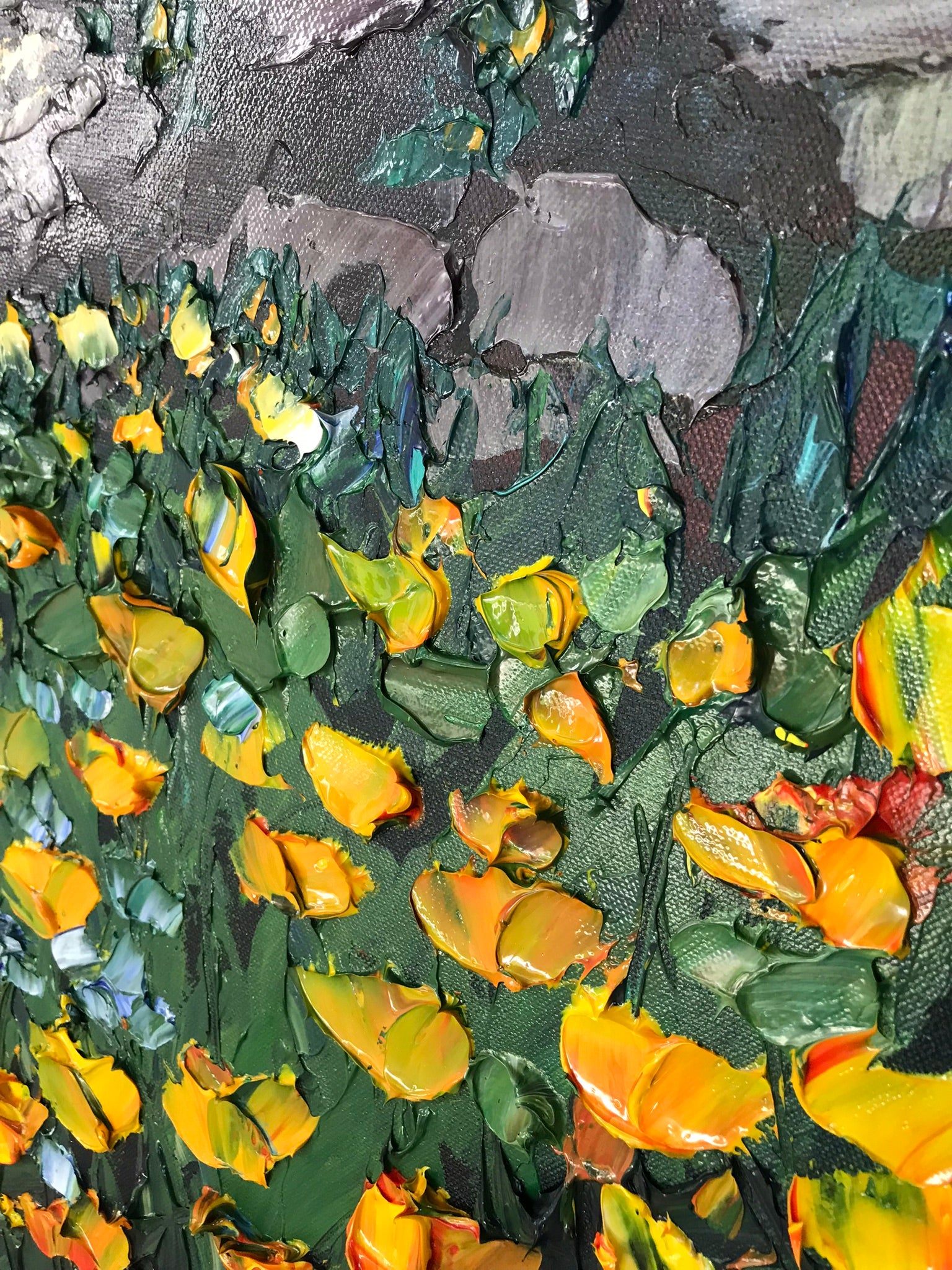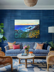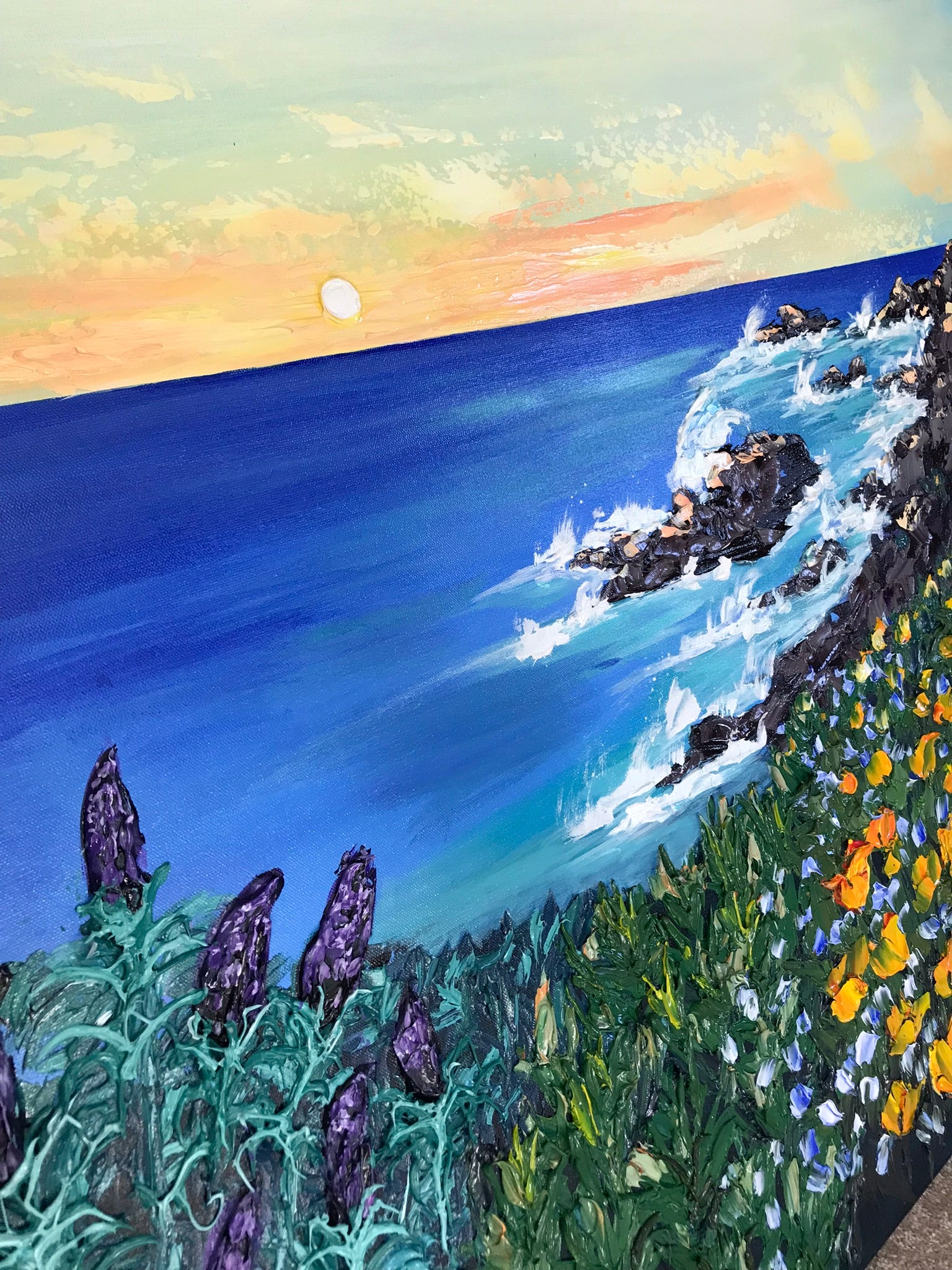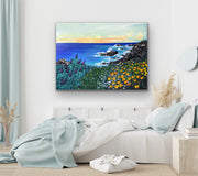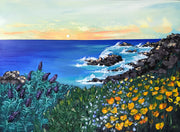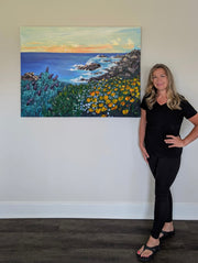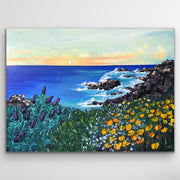 This painting is a celebration of contrast and calm, of bold color and quiet reflection. It’s a love letter to the Pacific coast in bloom, and to the peace that lives in those golden minutes between day and night.