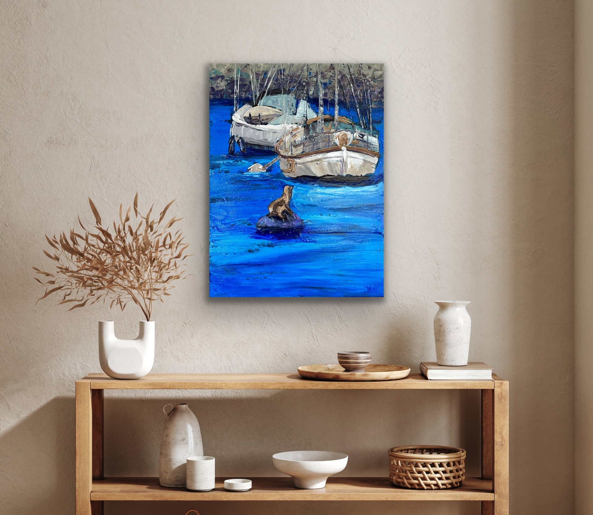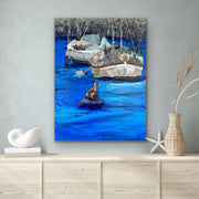 Using thick palette knife strokes, I brought texture and movement to the shimmering water, the moored vessels, and the rock where our watchful friend rests. “Keeper of the Wharf” is a tribute to those quiet, coastal moments where wildlife and the rhythms of the sea life come together in harmony.