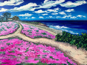 Each spring, the coastline of Pacific Grove transforms into a breathtaking spectacle—rolling hills and walking paths lined with vibrant pink ice plant, glowing like nature’s own magic carpet. This painting was inspired by my visit during the bloom, when the cliffs seemed to sing with color and the ocean breeze carried a quiet kind of wonder.