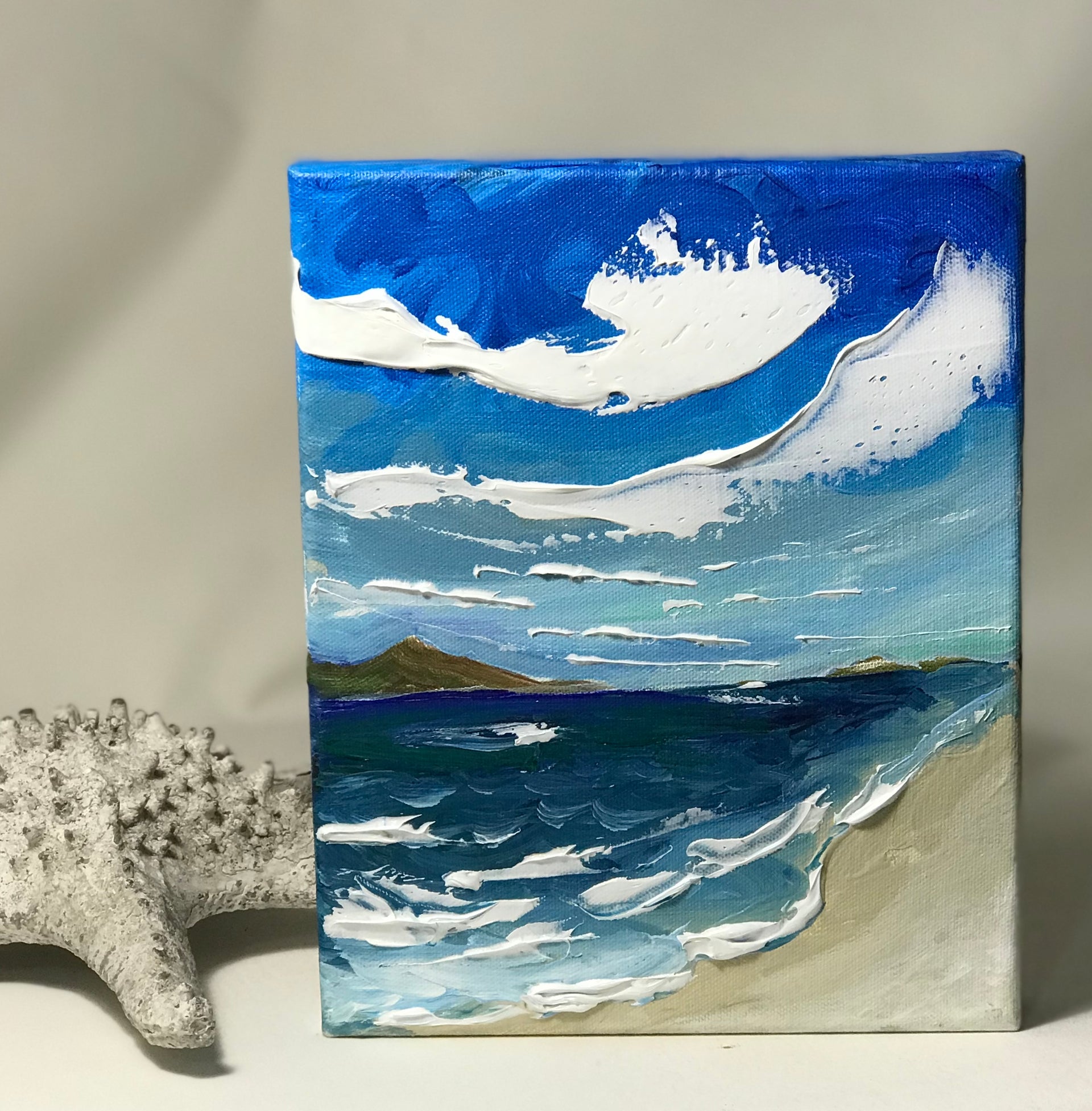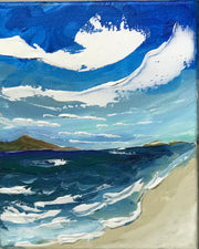 Is the ocean your happy place? It is mine! I love spending as much time at the beach as I can, so I loved creating this sweet 5x7x1.5" seascape featuring a blustery sky with calm waves. This painting would make a wonderful gift for yourself or a beach lover in your life.