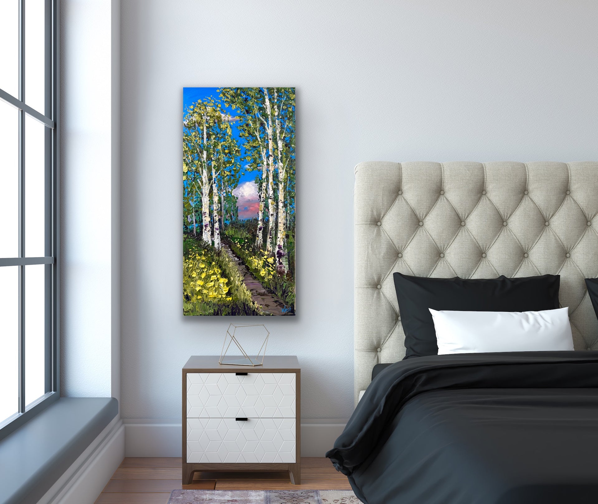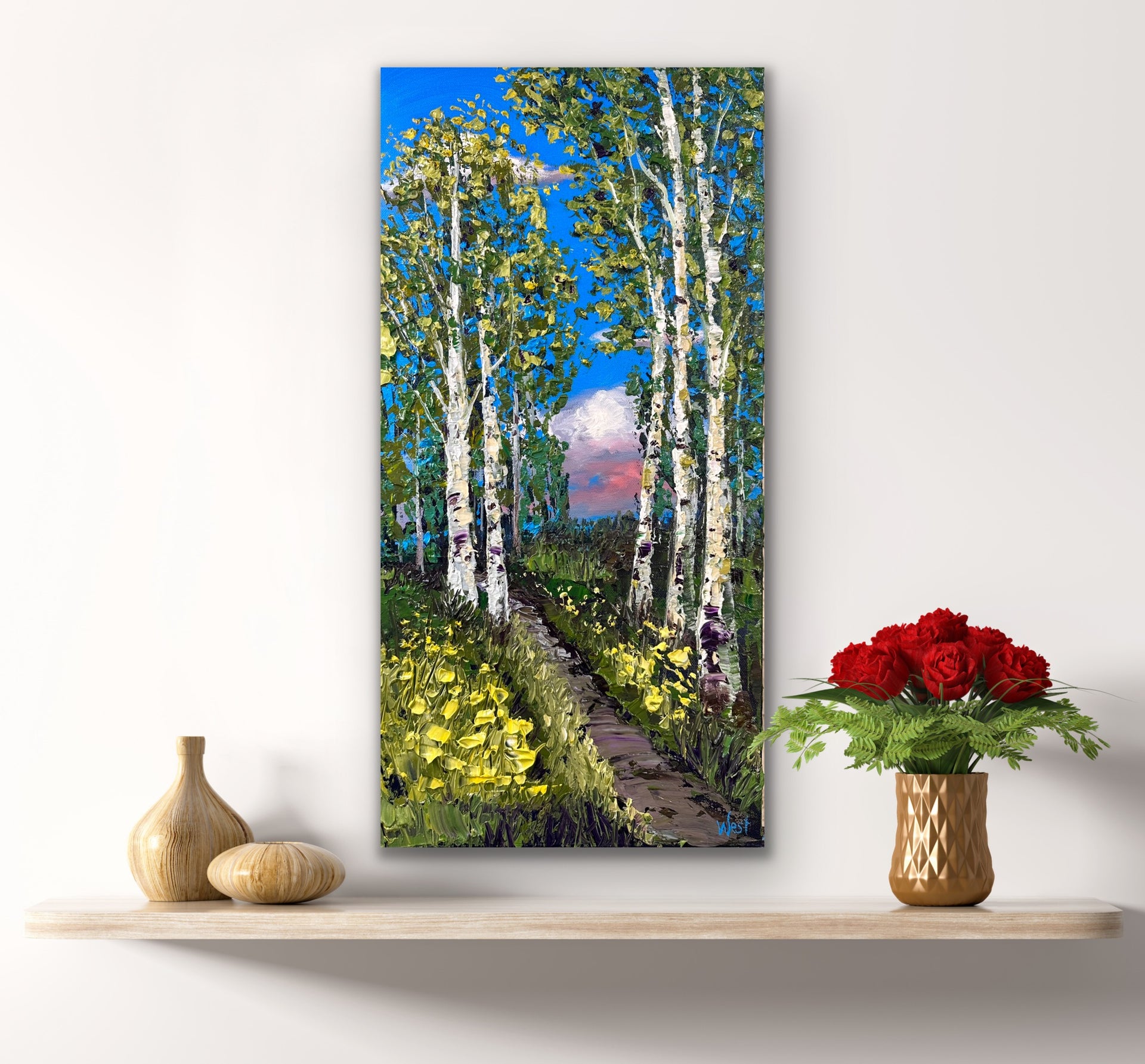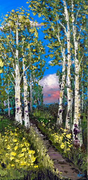 "Cotton Candy Skyline" came to life thanks to an art lover I met at a show! She sent me a stunning photo and I knew I had to capture it in art. The photo was bursting with color and calm, especially those gorgeous billowing salmon pink clouds. I hope you enjoy it as much as I do. This art is all about nature's serenity and joy. Enjoy it yourself or share it with someone special, and let "Cotton Candy Skyline" grace your space with its breathtaking view.