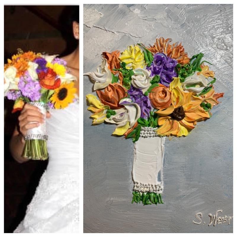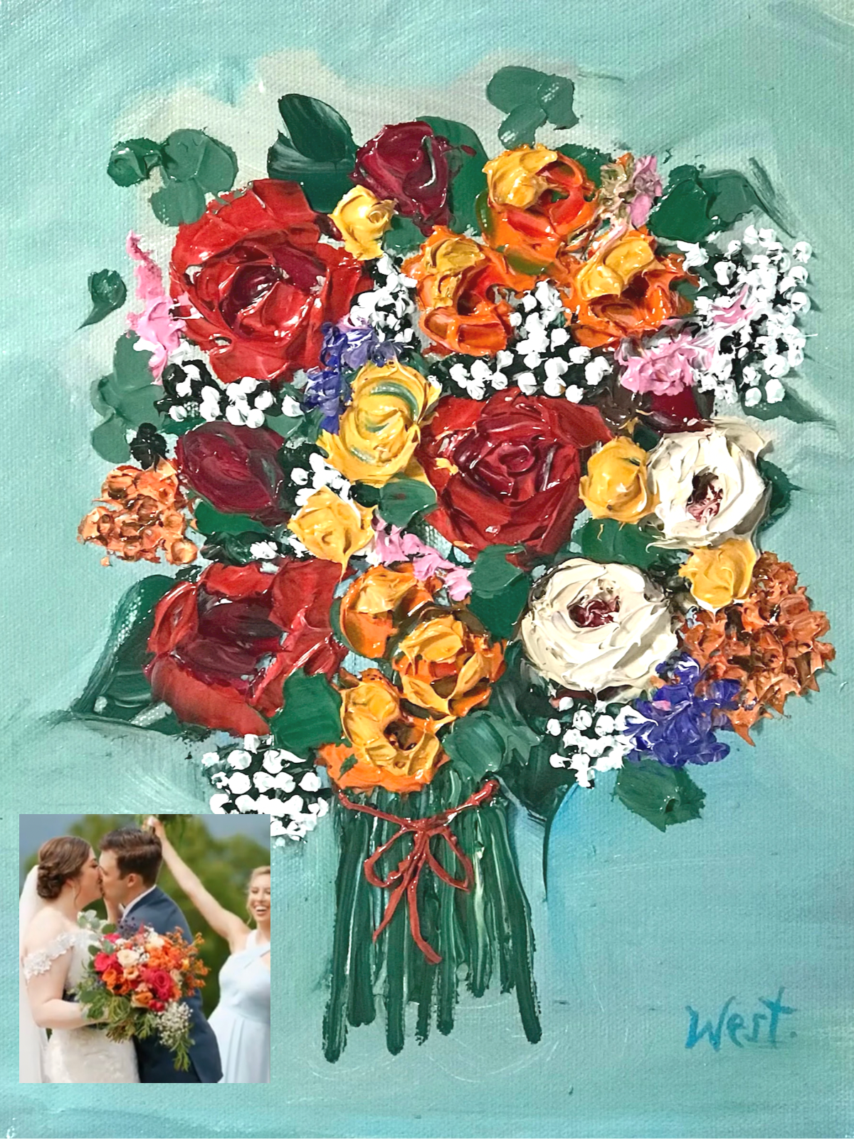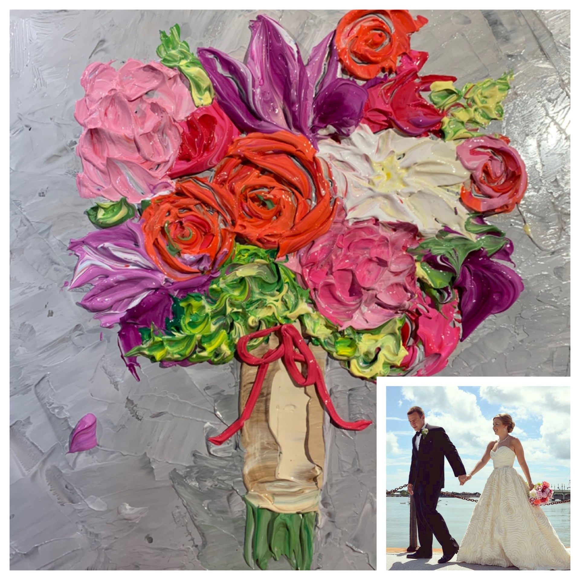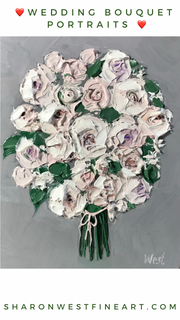 Have your or a loved one's wedding bouquet memorialized in a stunning portrait that will help you remember that special day forever! I will paint your bouquet on canvas using palette knives and stunning colors, using my unique texture medium and impasto style. Many artists create bouquet portraits, but mine are uniquely mine!