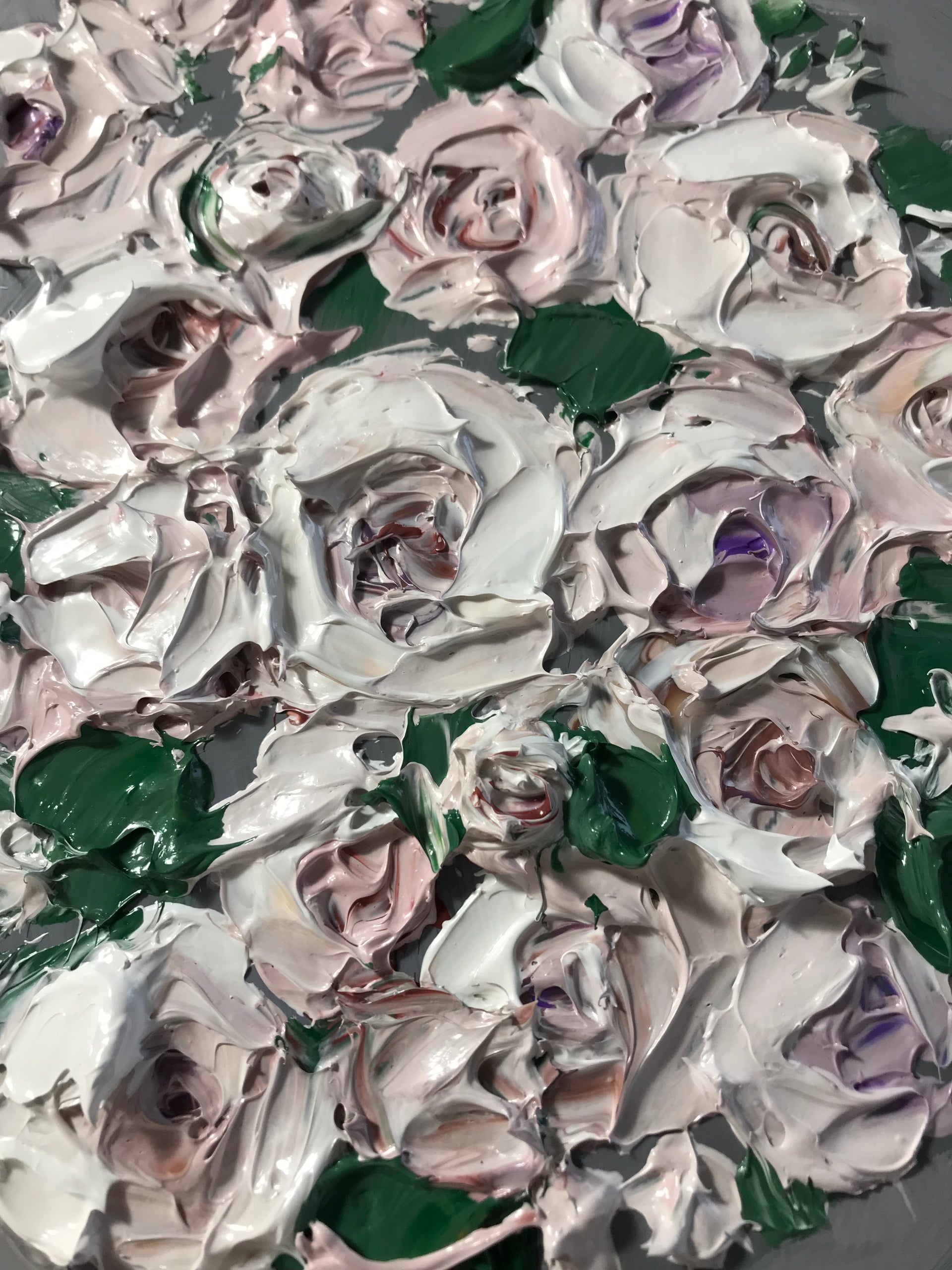 Materials: I use only the finest acrylic paint and texture mediums with palette knives and brushes to create a stunning effect, your flowers look elegant and fresh! I use gallery wrapped 1.5" thick canvases with sides painted, so no frame is needed. However, if you prefer to frame the work, just let me know and I can create it on a .75" canvas suitable for framing.
