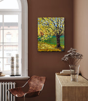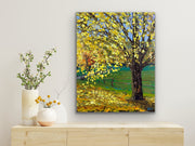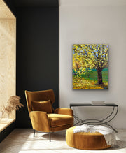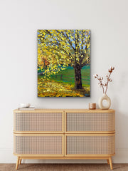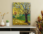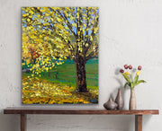 This artwork was crafted using palette knife strokes, lending it an impasto effect that enhances its natural allure. Hang it on your wall to bask in the tranquility of nature or gift it to a loved one to share the warmth and serenity of the season.