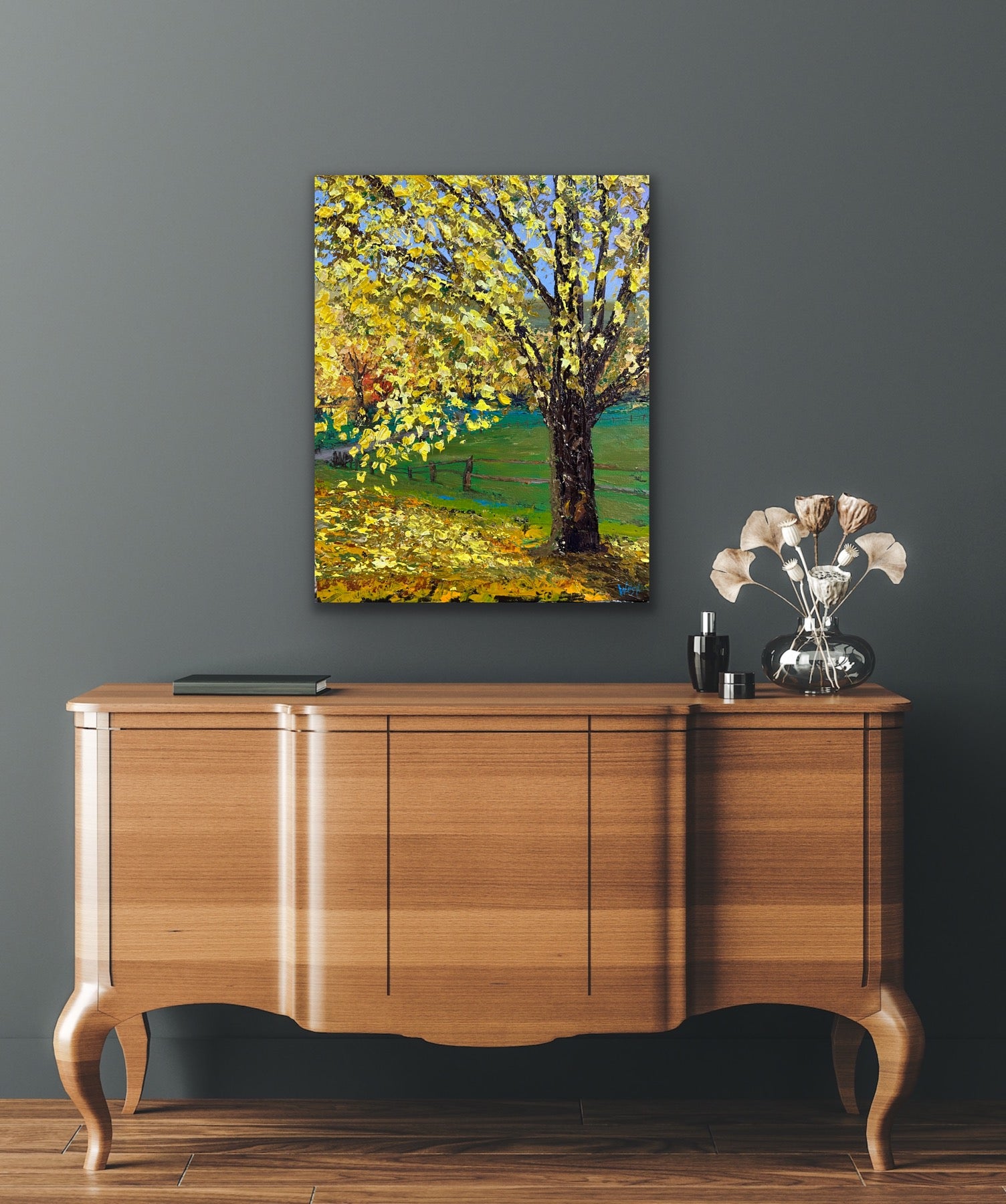 Experience the tranquil beauty of early Autumn as leaves gently fall in my latest creation, "Fall Splendor."