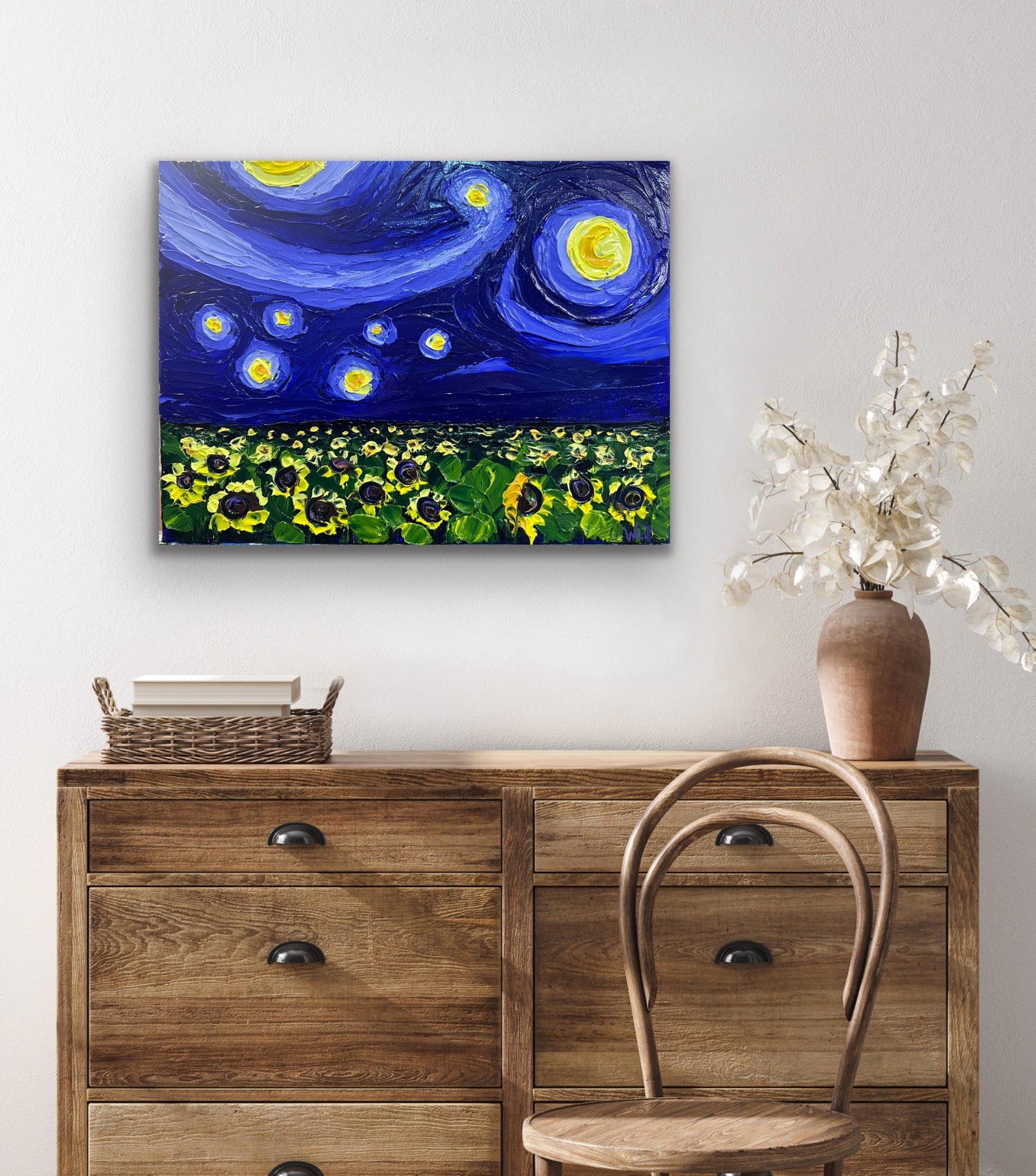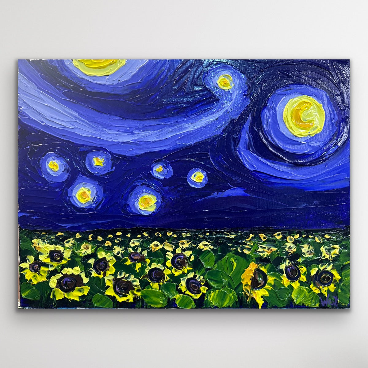 "Starry Sunflowers" is another Van Gogh tribute, capturing the enchanting beauty of a tranquil night overlooking a stunning sunflower field. I loved the way this scene captures the dreamlike quality of Van Gogh's classic sky overlooking the gorgeous flowers. What a joy to create!