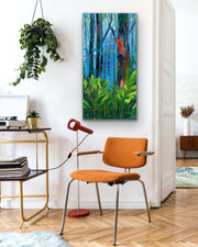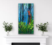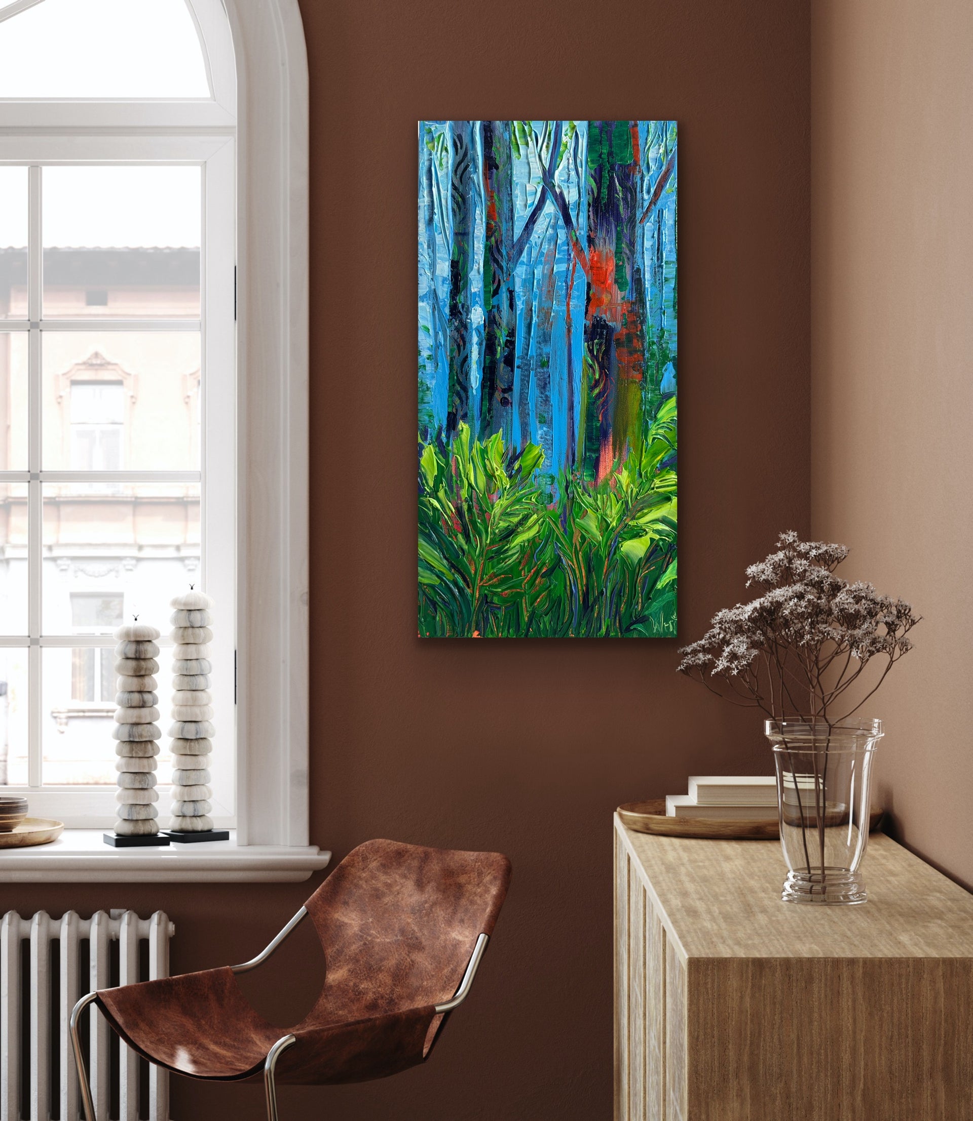 "Tropical Vibes" is a vibrant palette knife painting that captures the essence of a lush tropical forest. The artwork features a lively blend of tropical blues, greens, oranges, and purples, creating a dynamic and harmonious color palette. The thick, textured strokes, applied with a palette knife, give the painting depth and movement, evoking the feeling of being surrounded by the untamed beauty of the tropics.