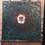 This impasto artwork captures the delightful curiosity and innocent spirit of our furry friend. The thick, textured brushstrokes add depth and a tactile quality, inviting you to run your fingers over the raised surfaces.