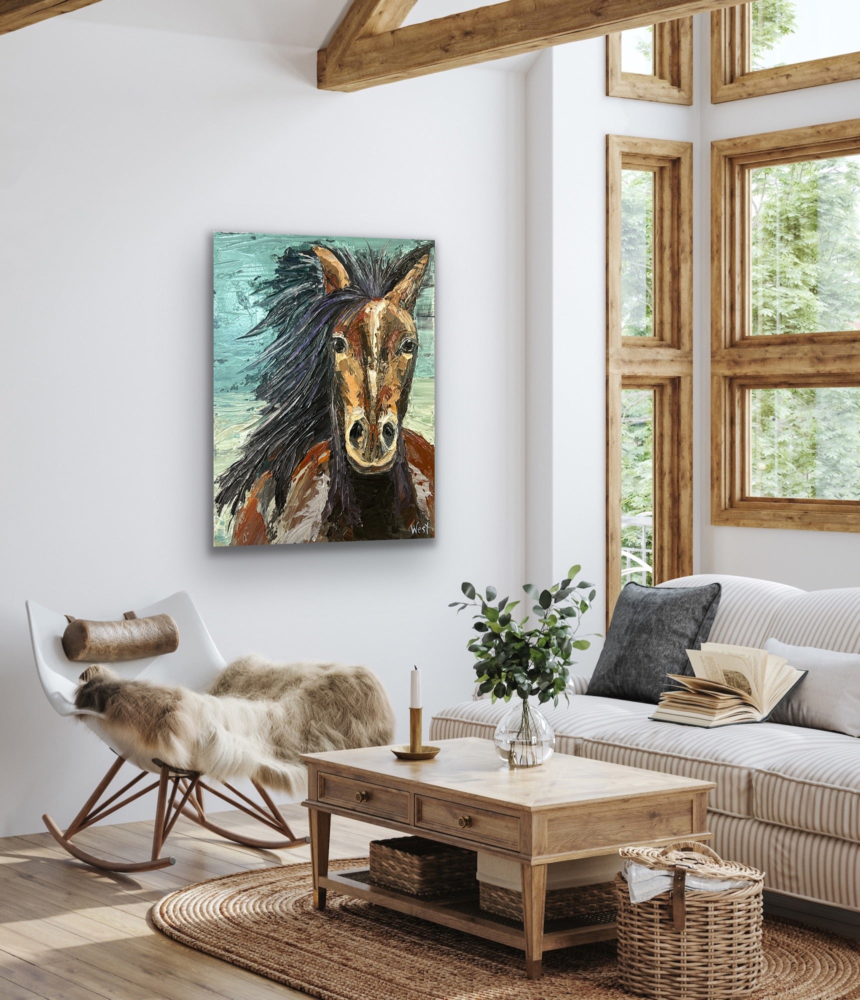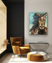 I used a palette knife to create thick, textured layers that bring out the energy and motion of the horse. The reddish-brown tones, flowing mane, and strong stance are meant to capture a moment of movement—powerful yet free.