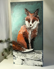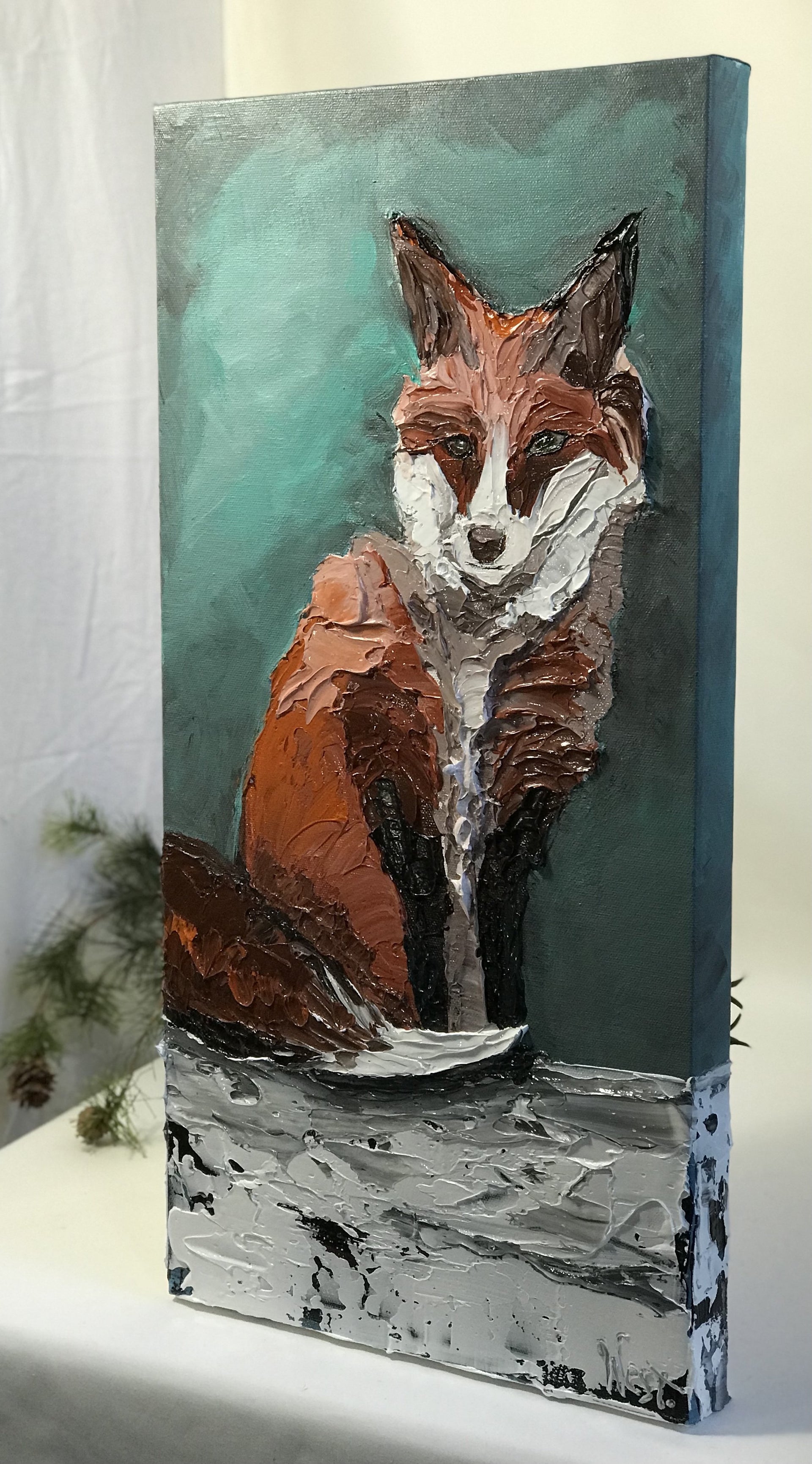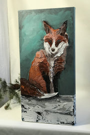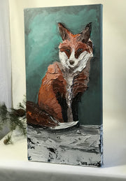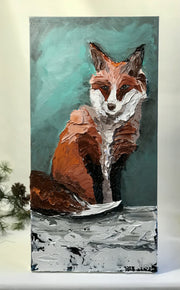 Do you love foxes as much as I do? I am absolutely fascinated by these gorgeous and elusive creatures. I have painted many foxes over the years and this little guy is one of my favorites! This original painting was inspired by a fox I saw on a very early freezing morning walk just after dawn. He had just noticed me walking by, unbothered but he did notice! It is a lush, bright, thickly textured impressionist painting. I use mostly palette knives, non-traditional implements, and some brush work.
