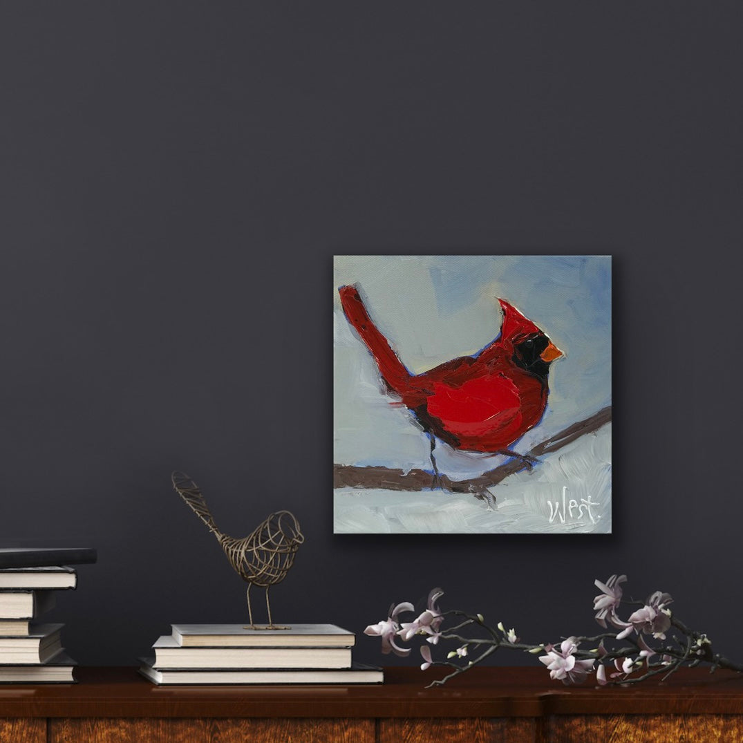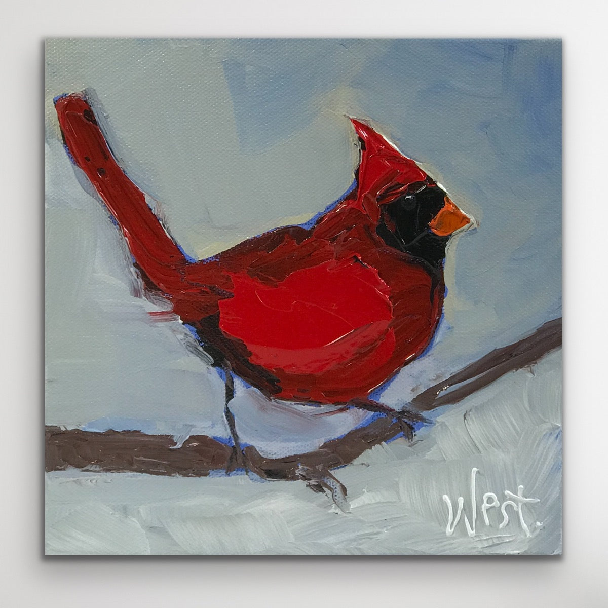 This is one of is my newest cardinal paintings. I just love their gorgeous red feathers and I see them in my garden so often.