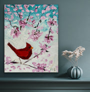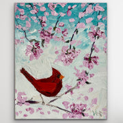This sweet guy is serenading a beautiful cascade of cherry blossoms in their full springtime glory.