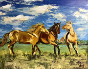As I painted, I focused on conveying the sense of unburdened freedom—their hearts and bodies alive in the beauty of the moment. The vibrant blue sky contrasts with their dynamic movement, making it feel as though I’m right there with them, caught up in the wind and the joy of simply being. This piece is about the wild, unbreakable connection between spirit and nature—a reminder of the freedom we all long for.