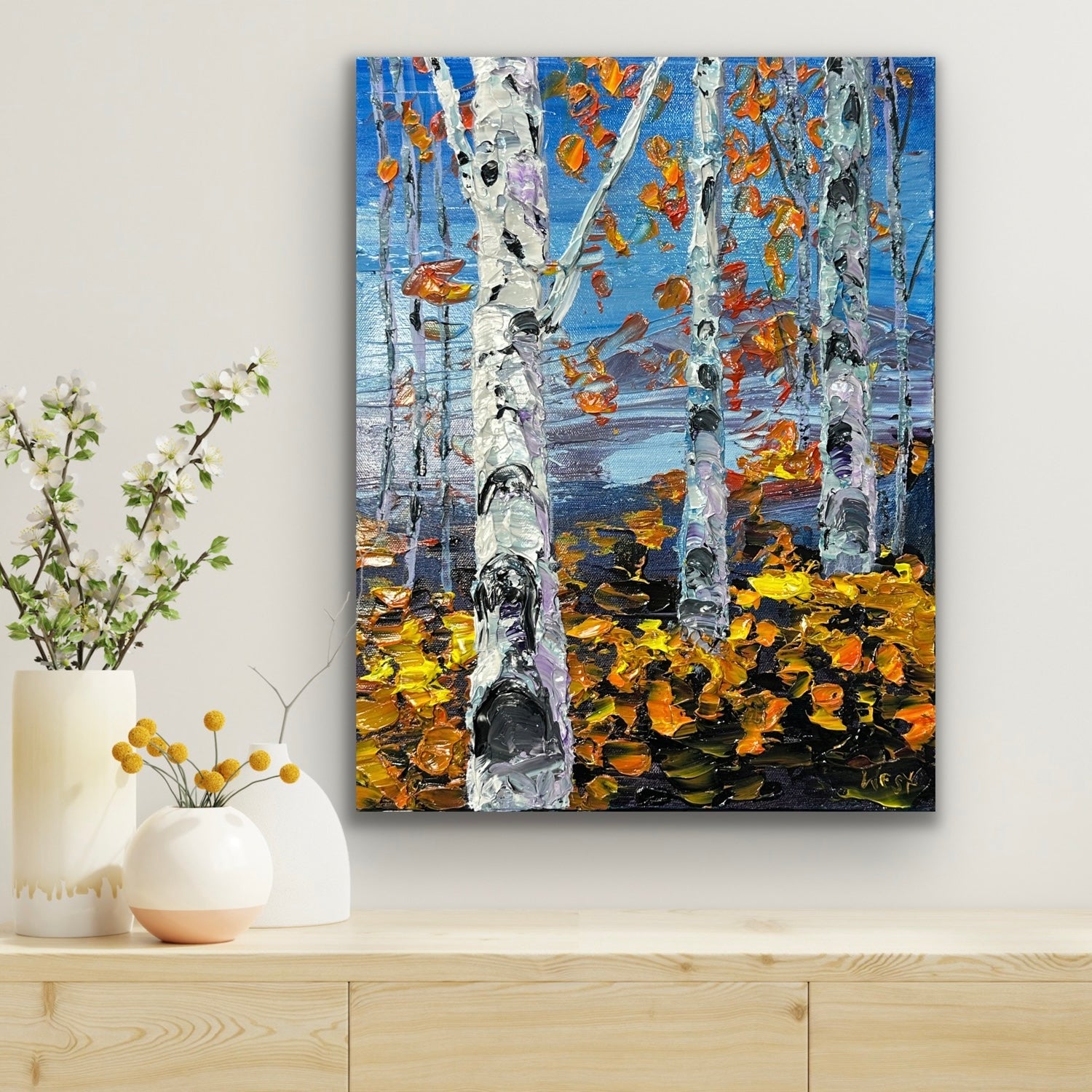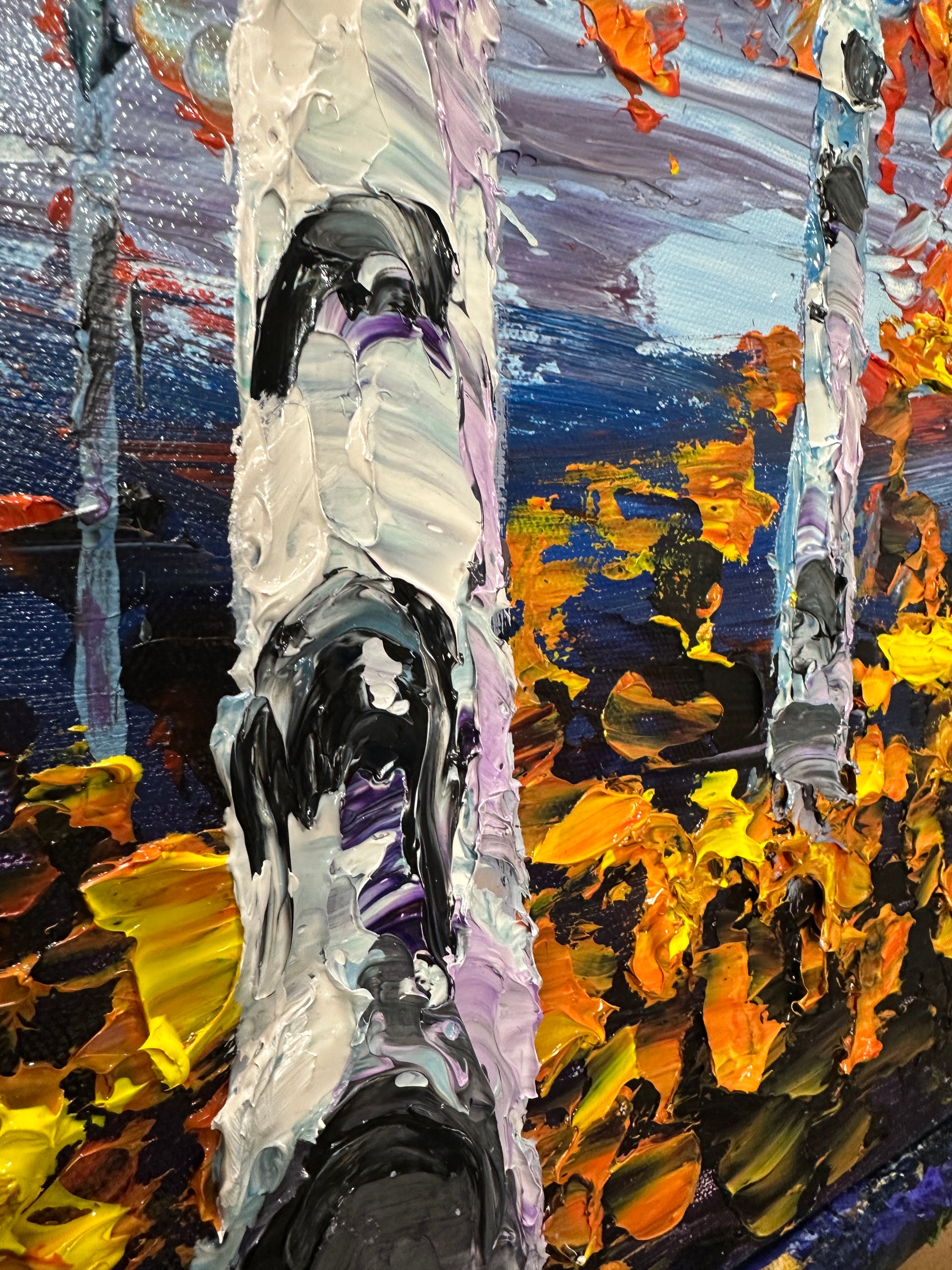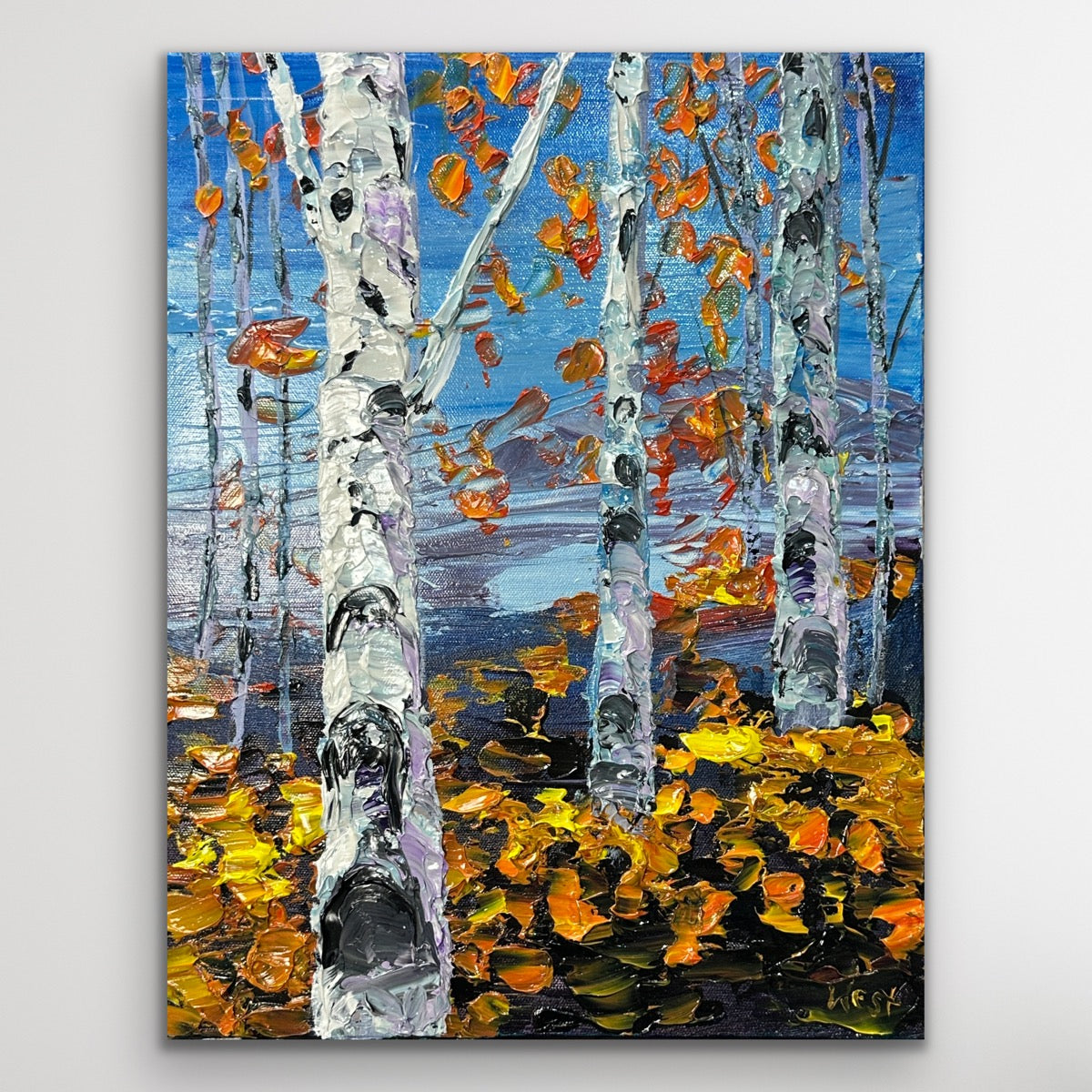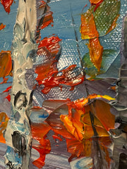 With my palette knife, I built layer upon layer of rich, textured paint, so the scene feels alive with movement — like the leaves are still swirling softly in the breeze. This painting is about that sacred pause in autumn when the season’s beauty feels timeless and transcendent, wrapping us in both peace and joy.