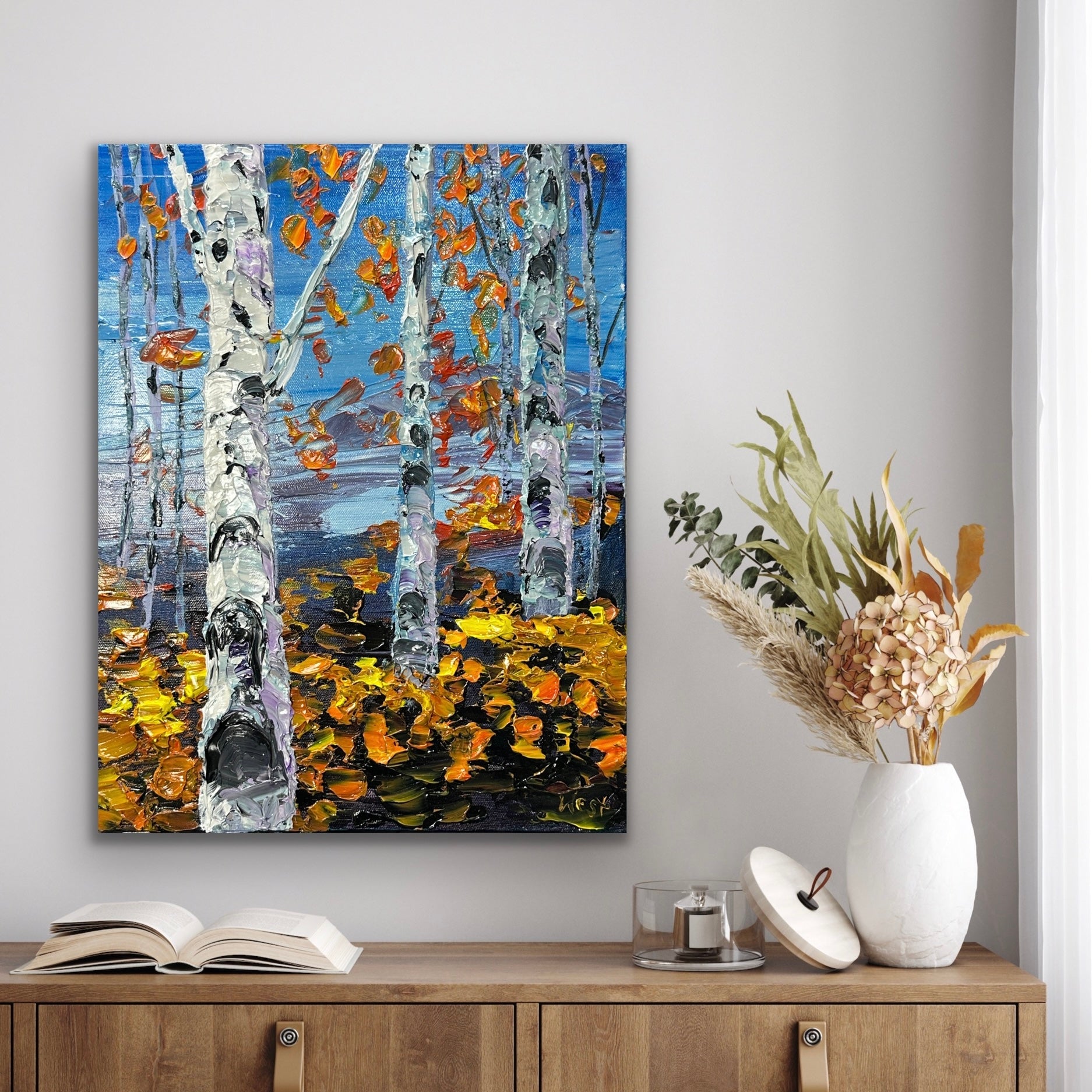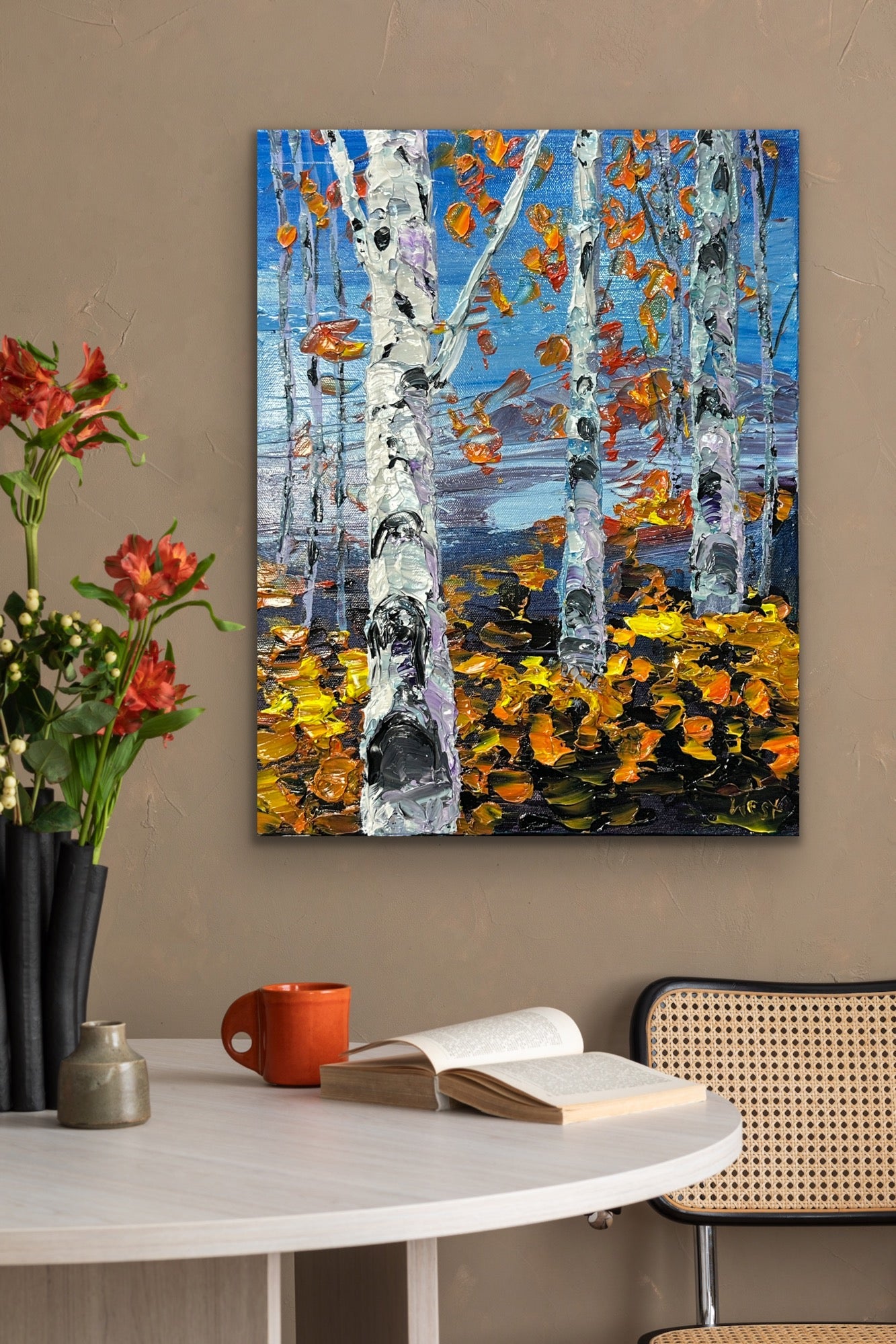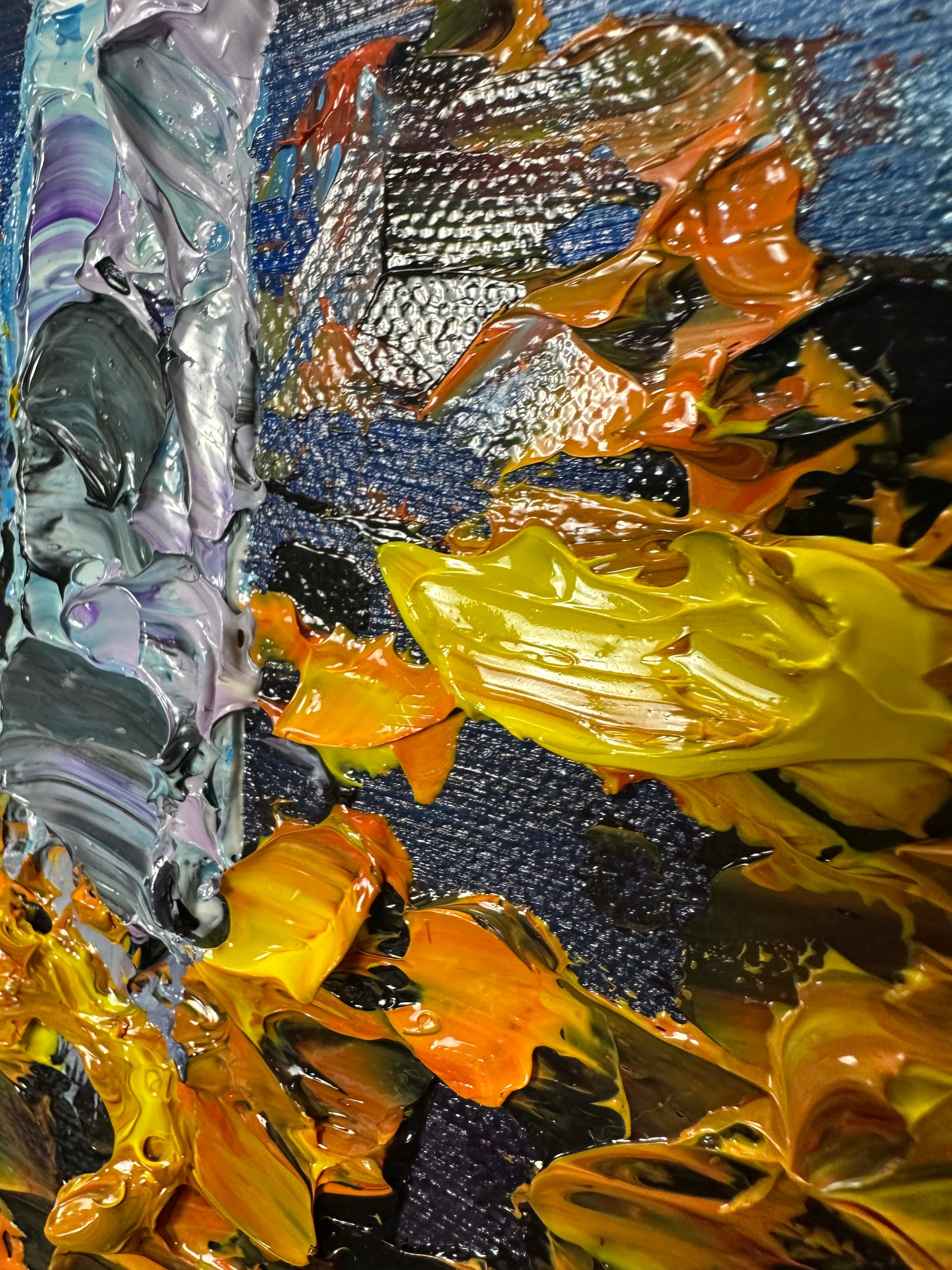 With my palette knife, I built layer upon layer of rich, textured paint, so the scene feels alive with movement — like the leaves are still swirling softly in the breeze. This painting is about that sacred pause in autumn when the season’s beauty feels timeless and transcendent, wrapping us in both peace and joy.